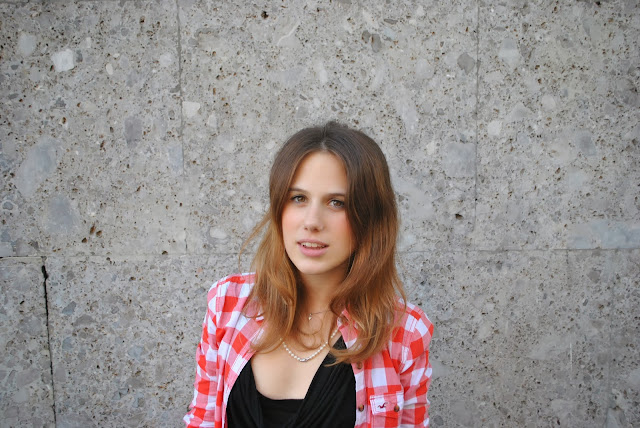 Ciao Amici! Venerdì il sole era splendente in cielo e per poco mi sono illusa che il sereno potesse tornare….un’illusione appunto, dato il tempaccio! Per l’occasione (da festeggiare) ho indossato una gonna, purtroppo le collant, ballerine e per dare un tocco di colore ho camicia a quadri bianca e rossa.Voi…
